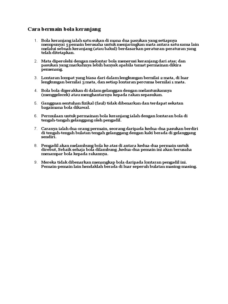 Dwi Puji Rahayu Nim. Kuasa pecutan Latihan. Bola basket melibatkan dua tim dengan masing-masing tim terdiri dari lima pemain yang bertugas menempatkan bola di keranjang tim lain.